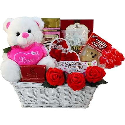 Art Of Apreciacion De Regalo Cestas De San Valentin Tesoros Cesta De Regalo Con Oso De Peluche Amazon Com Grocery Gourmet Food