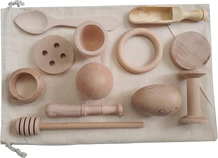 Cesto Tesoros Bebe Con 10 Piezas De Madera Kit Montessori Amazon Es Handmade