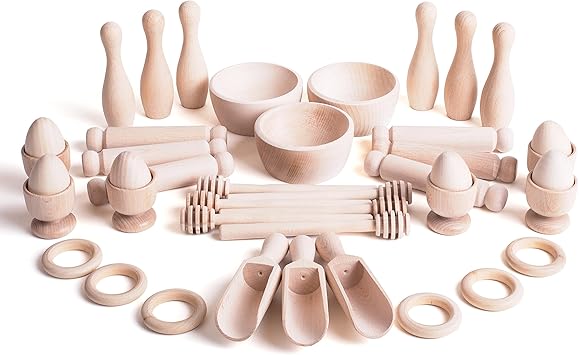 Cesto Tesoros Montessori 14 Piezas De Madera Juego Bebe 6 Meses Amazon Es Handmade