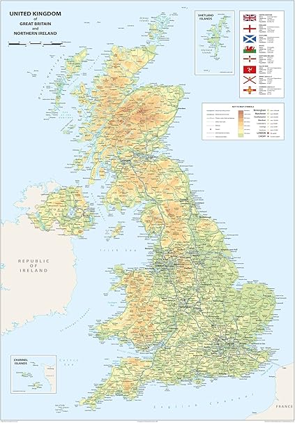 Mapa Del Reino Unido De Gran Bretana E Irlanda Del Norte Tamano De 42 X 59 4 Cm Amazon Es Oficina Y Papeleria