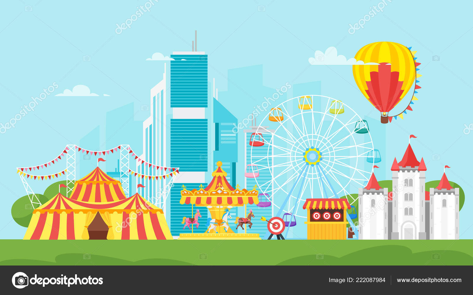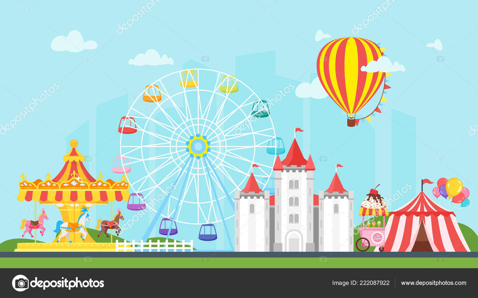 Vector Flat Style Illustration Of Amusement Park Carnival For Royalty Free Cliparts Vectors And Stock Illustration Image