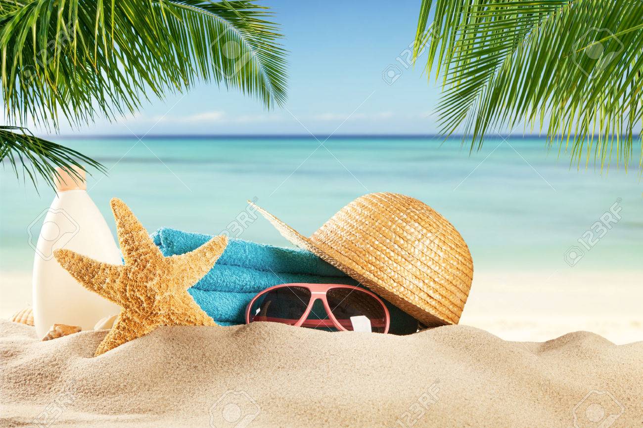 Accesorios De Verano En La Playa De Arena Falta De Definicion En El Fondo Del Mar Verano Concepto De Relajacion Exotica Fotos Retratos Imagenes Y Fotografia De Archivo Libres De Derecho Image