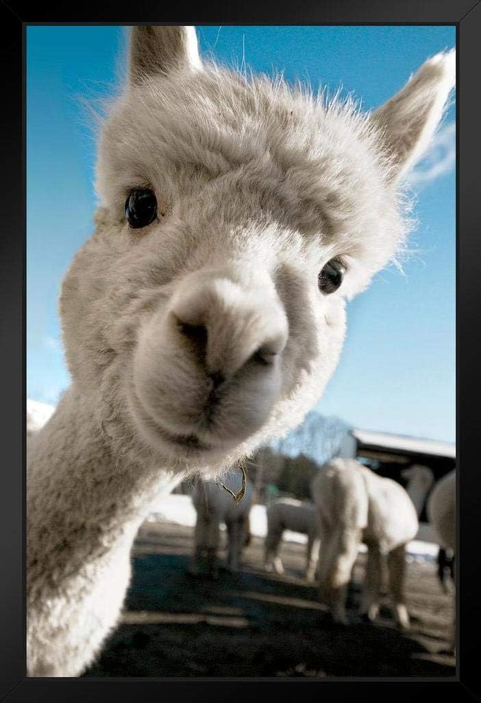 Amazon Com Alpaca Face Cute Baby Close Up View Black And White Animal Photography Face Cute Funny Llama Photo Picture Zoo Adorable Black Wood Framed Poster 14x Posters Prints