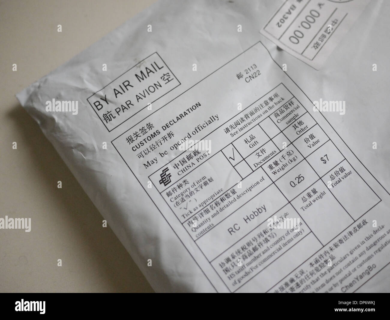 Por Correo Aereo Par Avion Declaracion Aduanera China Post Informacion Sobre Parcela Fotografia De Stock Alamy