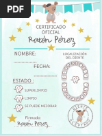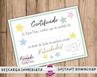 Hoy os traigo un imprimible muy especial Un diploma o certificado de entrega del diente que el ratoncito Pérez deja cuando se lo lleva ¿Quién es el ratoncito Pérez?. El Ratoncito Pérez siempre certifica que el diente que se le entrega está en perfectas condiciones (o no), dejando un certificado firmado por el mismo, junto al regalo que le deja al niño o niña al llevarse el diente Éste es un artículo DIGITAL, en formato pdf preparado para imprimir en Din y. Carta del Ratoncito Perez También te ofrecemos el PDF de la carta del Ratoncito Perez para imprimir Más que una carta es más bien un certificado de entrega del diente de leche que entrega el Ratoncito Perez al niño e indica el nombre del niño, la fecha de entrega del diente, la posición y el estado.