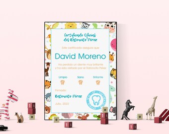 Certificado de entrega del Ratoncito Pérez para niños Tarjeta de animales Caída de dientes Certificado imprimible Hada de los dientes $1 Loading In stock Add to cart PDF Printable Instant Download xTinyLoopx Sale Price $127 $ 127 $ 150 Original Price $150. Explicamos cómo escribir la carta del Ratoncito Pérez Se pueden descargar plantillas gratis en Word o PDF para rellenar con nuestros datos e imprimir después Una carta que parece escrita a mano, y un certificado de diente recibido. Certificado de caída de dientes donde se puede indicar que diente se ha caído, en que estado se encontraba, datos del niño, comentarios e importe que el ratón le ha dejado Sobre para montar donde guardar el certificado.