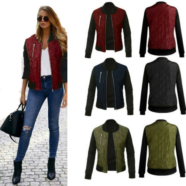 Bagilaanoe Womens Ladies Fashion Bomber Jacket Cotton Zip Up Biker Quilted Coat Tops Walmart Com Walmart Com