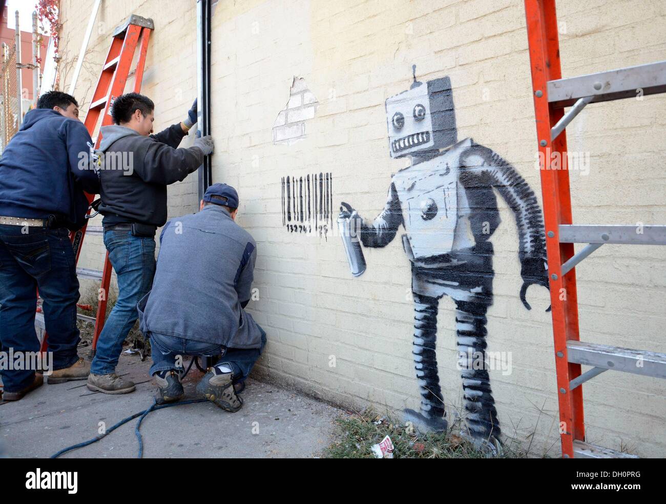 New York Ny Usa 28th Oct 13 Banksy On Location For Graffiti Stock Photo Alamy