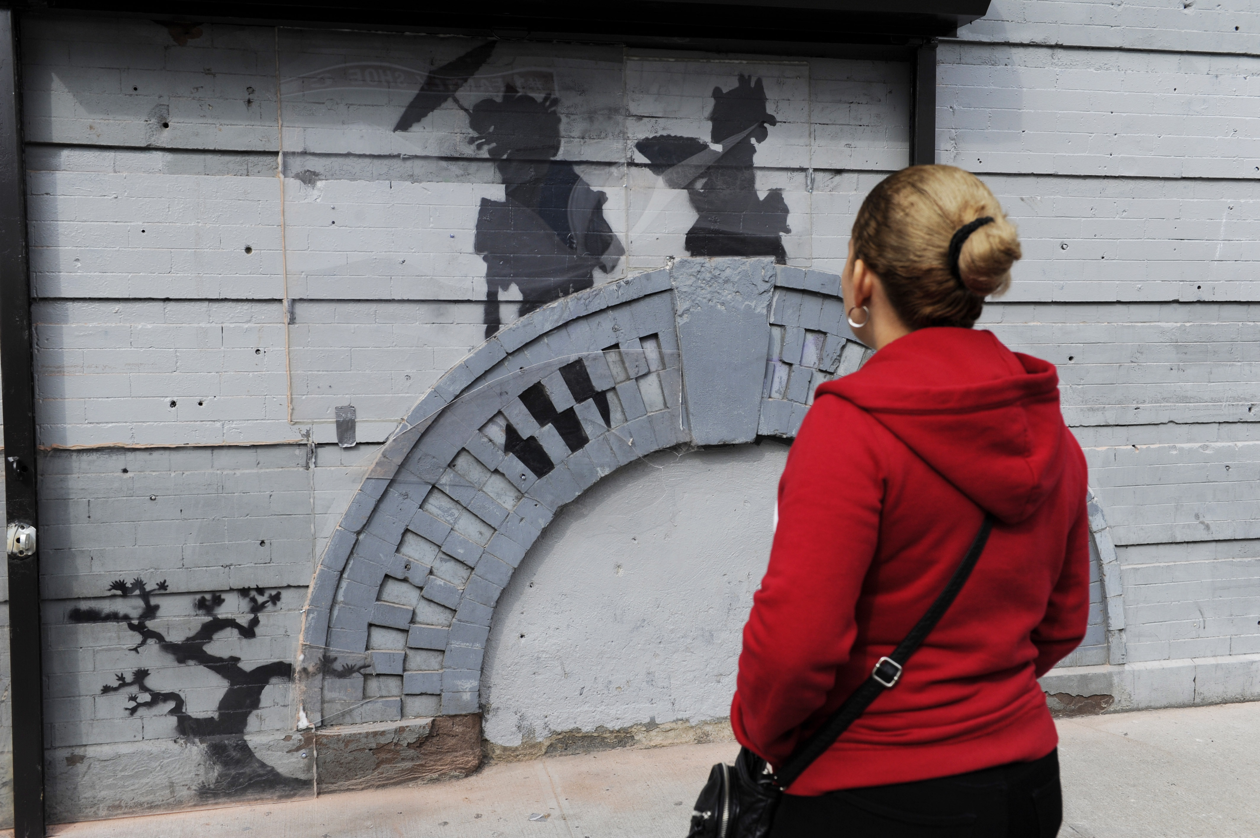 A woman takes a picture of an artwork by British graffiti artist Banksy in Lower Manhattan in New York City, on October 15, 13 Art collectors and tourists in New York got a bargain during the. Banksy is once again back on the streets of New York City with this new piece which was just painted somewhere in South BronxThe elusive British artist dropped some of his classic imagery with this great piece entitled "Ghetto 4 Life"You know the drill by now but keep checking back with us as we w. A bike sits next to the newest art installation by British artist Banksy, a robot and a barcode, in the Coney Island area of New York City, October 28, 13 REUTERS/Brendan McDermid.