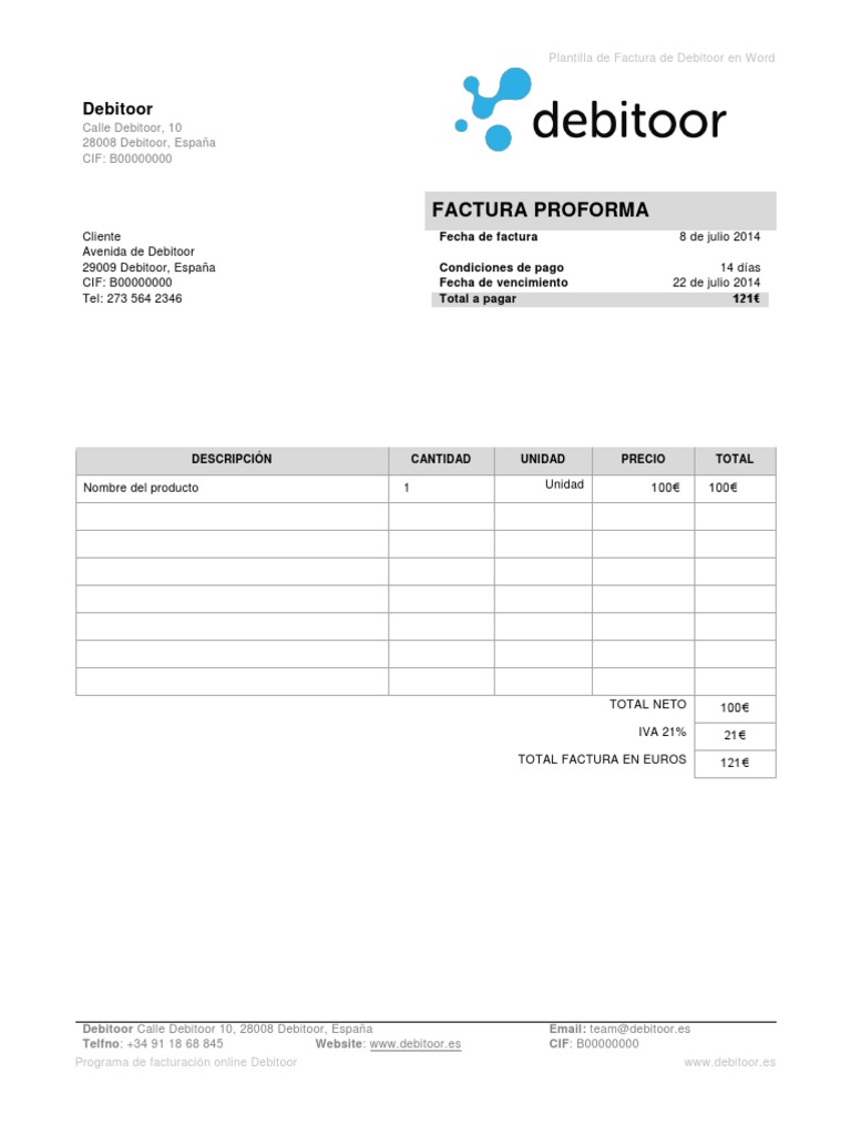 Plantilla De Factura Proforma Word
