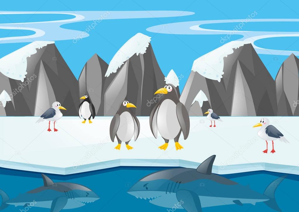 Pinguinos En El Polo Norte Antecedentes Del Artico Ilustracion Del Vector Ilustracion De Polo Norte