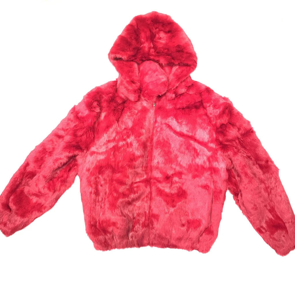 Red Rabbit Fur Hooded Bomber Jacket Jackets Maker