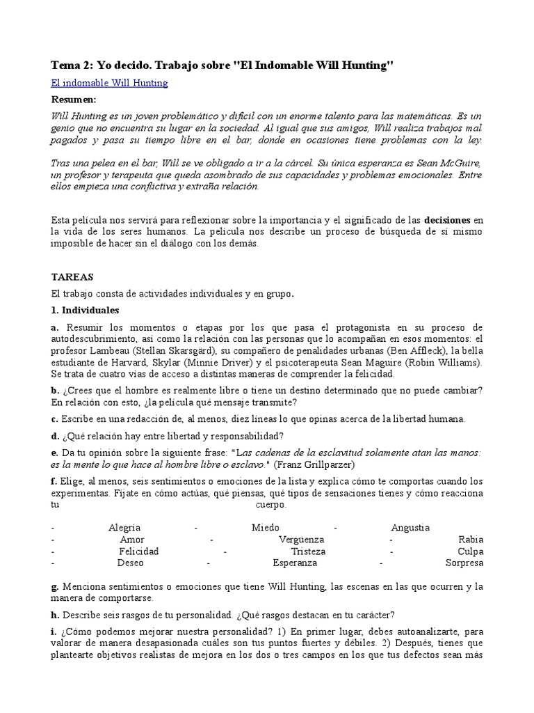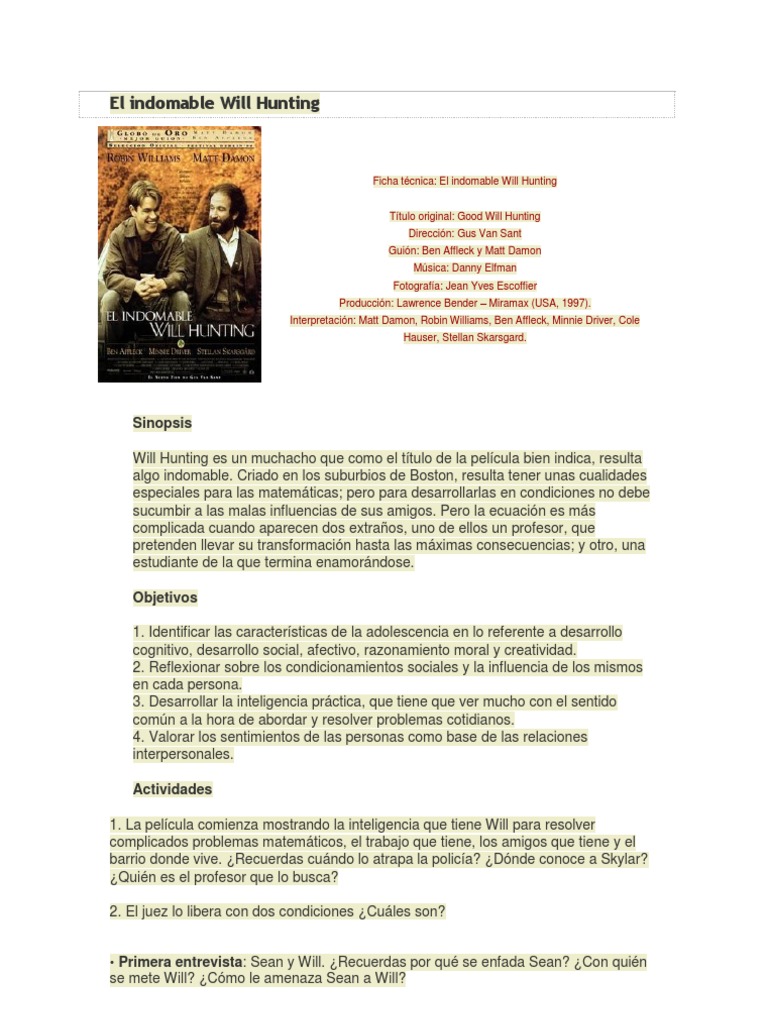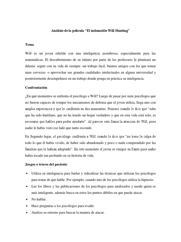 Doc Analisis De La Pelicula El Indomable Will Hunting Cristian Angarita Academia Edu