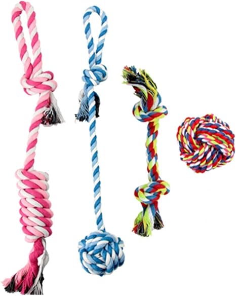Juego De 4 Juguetes Para Perros Cuerda Con Nudos Juguete Pelota En Hilos De Algodon Juguetes De Mascar Color Random Amazon Es Productos Para Mascotas