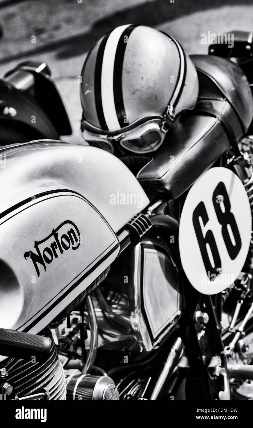Norton Cafe Racer Moto Con Casco Y Gafas Britanica De Motocicletas Clasicas En Blanco Y Negro Fotografia De Stock Alamy
