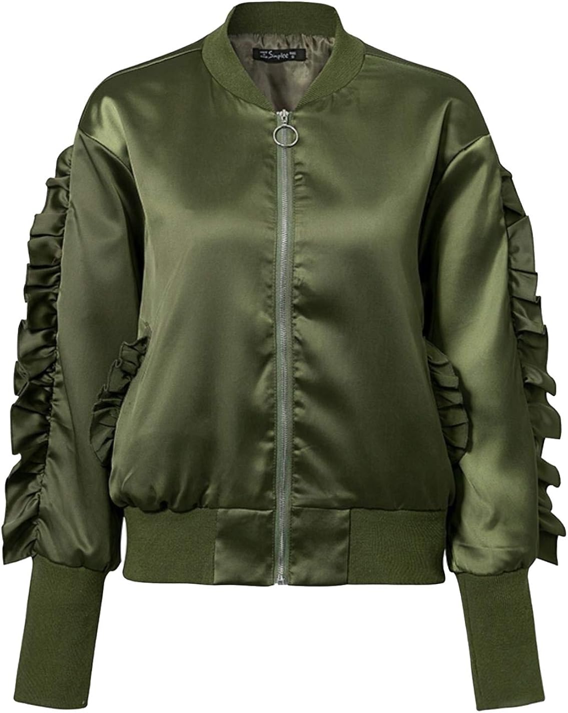 Amazon Com Basic Army Green Bomber Jacket Coat Women Satin Lace Up Pocket Clothing