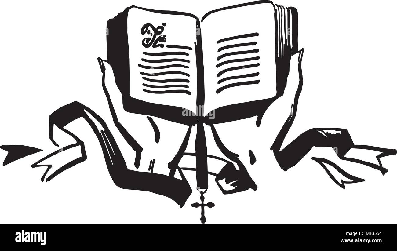 Manos Sosteniendo Biblia Abierta Retro Ilustracion Clipart Imagen Vector De Stock Alamy