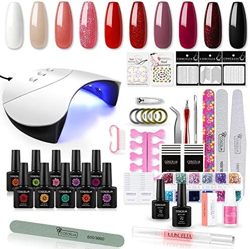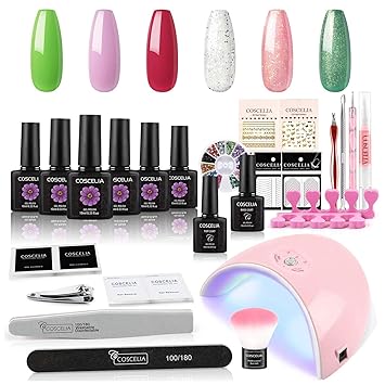 Amazon Com Coscelia Gel Nail Polish Starter Kit 5 Colors Gel Polish Set Base Top Coat 24w Led Nail Dryer Lamp With 24pcs Glitter Powder Nail Decorations Rhinestone Nail Tools Manicure