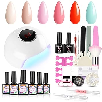 Amazon Com Shelloloh 6pc Gel Polish Kit With Led Nail Lamp 6 Colors Nail Gel Polish Set Base Top Coat 24w Nail Curing Lamp Manicure Tools And Decorations Beauty