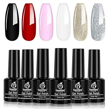Amazon Com Beetles Gel Nail Polish Set Red Black Pink White Golden Silver Glitter Soak Off Gel Nail Kit 7 3ml Each Bottle Beauty