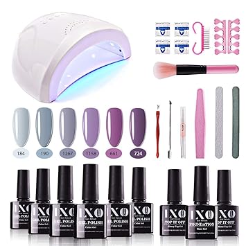Amazon Com Ixo Gel Nail Polish Starter Kit With Upgraded 48w Uv Led Light Nail Lamp Soak Off Gel Base Top Coat Lavender Series Pink Purple Gel Polish Set Nail Art Manicure