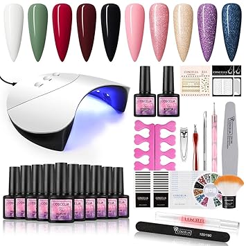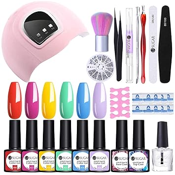 TOMICCA Poly Extension gel Nail Kit with 48W LED Lamp 6 Glitter Colors Builder Gel, Acrylic Nail Extension Set for Starter & Professional DIY AllinOne Manicure Kit, with Base & Top Coat, Slip Solution Pen 41 out of 5 stars144 CDN$ 4999CDN$4999 FREE Shipping by Amazon. The third nail kit on our list is the AzureBeauty Deluxe Gel Nail Polish Starter Kit It comes with almost all basic nail art tools from manicure preparation to polish remover and nail nutrition and its a very affordable yet premium option The Azure Beauty starter kit is a fantastic complete solution. Amazon's Choice for "gel nail kit" Gel Nail Polish HNM 6 Gel Nail Starter Kit with 24W LED Curing Lamp Base and Top Coat UV LED Soak Off Nail Polish Remover Wrap Manicure Tools Gift Set 43 out of 5 stars 2,161.