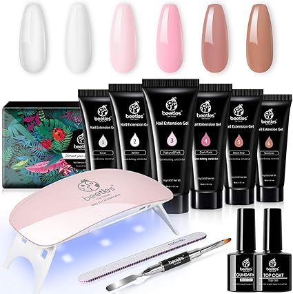 Amazon Com Beetles Poly Extension Gel Nail Kit Nail Builder Gel Nail Enhancement Trial Kit Professional Nail Technician All In One French Kit With Mini Nail Lamp For Nail Art Starter Kit Health Personal