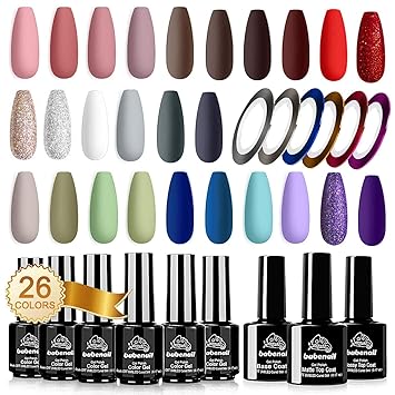 Amazon Com Babenail Gel Nail Polish Sets 35 Pcs Gel Nail Polish Kit 26 Colors Soak Off U V Gel Polish With Glossy Matte Top Gel Base Coat For 6