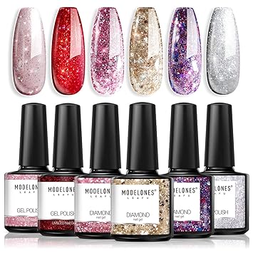 Amazon Com Modelones Glitter Gel Nail Polish Set Glitter Diamond Series Sparkly Shiny Nail Gel Pink Red Gold Purple Silver Varnish Manicure Kit Soak Off Led Gel Polish For Beginners Nail Art