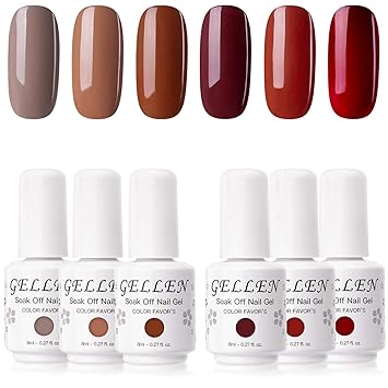 Amazon Com Gellen Gel Nail Polish Kit Coffee Red Wine Tones Trendy Earthy Browns Burgundy Palette Nail Art Gel Colors Home Gel Manicure Set Beauty