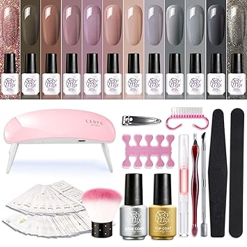 Amazon Com Gellen Gel Nail Polish Kit With Uv Light Led Nail Lamp Nude Grays 6 Colors Nail Gel Starter Kit Top Base Coat Matte Top Manicure Tools Popular Nail Art Decorations