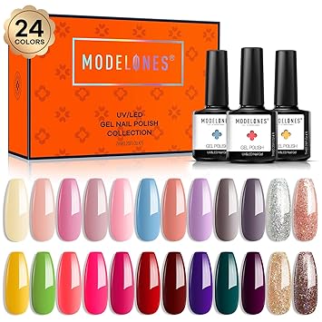 Amazon Com Modelones 24 Colors Gel Nail Polish Set Summer Into Autumn Collection Glitter Nude Grays Pink Gel Polish Soak Off Nail Gel Polish Starter Kit Nail Art New Year Gifts Box