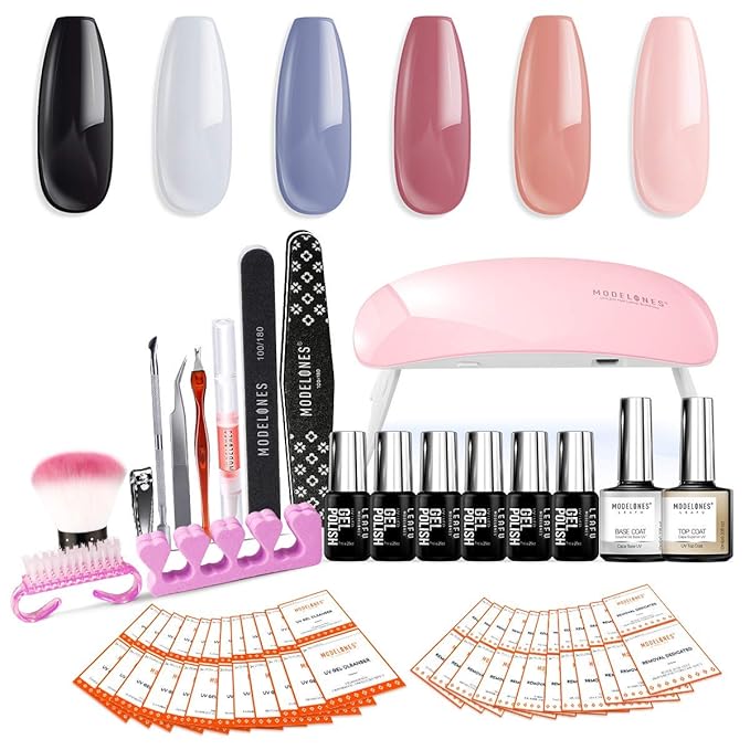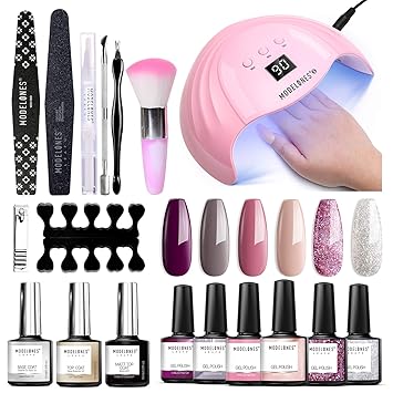 Amazon Com Gel Nail Polish Kit With U V Light 48w Led Nail Lamp Modelones 7 Nude Colors Gel Nail Polish Set No Wipe Base Top Coat Nail Primer Nail Art Decorations