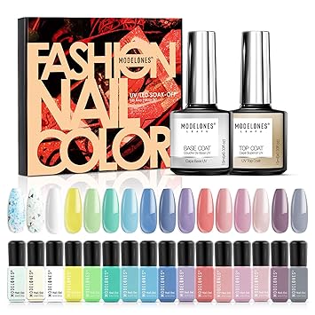 Amazon Com Modelones Color Gel Nail Polish With Gel Top Coat And Base Coat 18 Pcs Soak Off Gel Polish Nail Art Kit For Starters Home Use Manicure Kit Christmas Gifts New Year