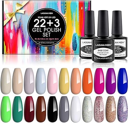 Amazon Com Lagunamoon 25 Pcs Gel Nail Polish Kit 8ml Large Volume Soak Off Gel Nail Polish With Base Coat And No Wipe Glossy Matte Top Coat Gel Nail Starter Kit Led