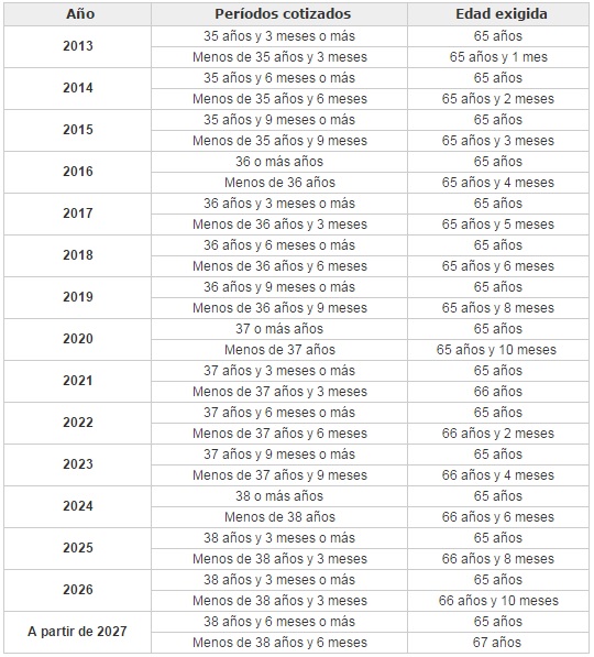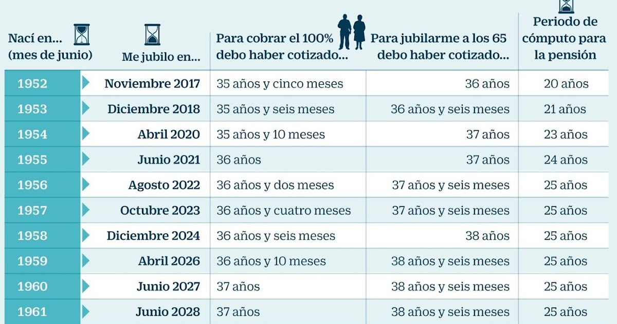 La reforma de las pensiones ha introducido dos principales novedades la edad legal de jubilación pasa de los 65 a los 67 años y se requiere cotizar durante 37 años para cobrar el 100% de la. La edad de jubilación de los nacidos en 1957 es de 66 y 6 meses Si usted nació en 1958 la edad de jubilación completa es 66 años y 8 meses Para los nacidos en 1959, la edad de jubilación completa es de 66 y 10 meses. La reforma de las pensiones ha introducido dos principales novedades la edad legal de jubilación pasa de los 65 a los 67 años y se requiere cotizar durante 37 años para cobrar el 100% de la.
