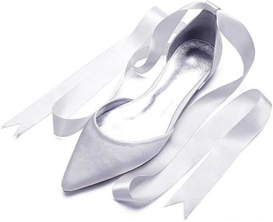 Lgykumeg Zapatos Planos Para Novia De Encaje Con Puntera Cerrada Zapatos Novia Boda Comodos Marfil Zapatos De Boda Saten Con Lazo Blanco 39eu 8us 6uk Amazon Es Hogar