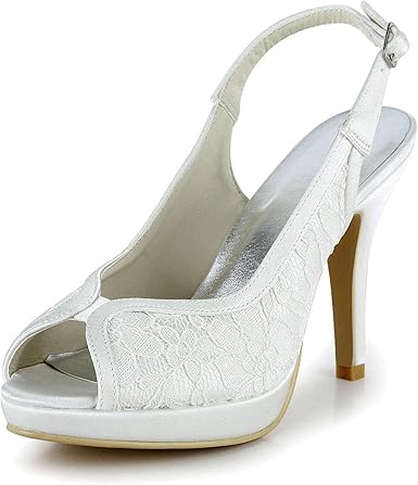 Charmstep Mujeres Boda Zapatos De Novia Peep Toe Encaje Tacon Alto Plataforma Sandalias Slingback 10cm Tacon Mz650 Amazon Es Ropa Y Accesorios