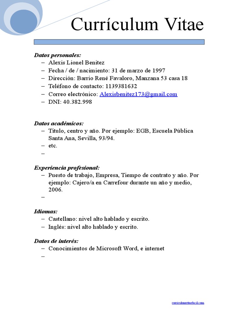 Ejemplos De Curriculum Vitae Sencillos En Word Compartir Ejemplos