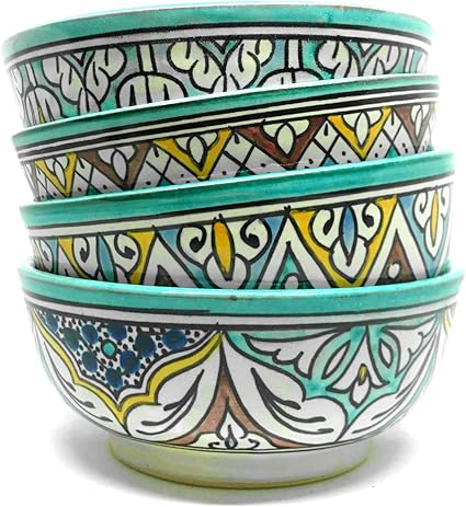 Juego De 4 Cuencos Marroquies De Colores Con Platos De Ceramica Marroqui De Marruecos Cuencos De Ceramica Grandes Vajilla Plana Pintada A Mano De Oriente Amazon Es Hogar