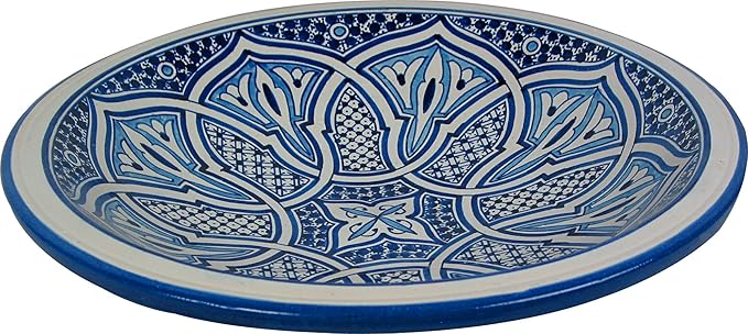 Plato Grande De Ceramica Marroqui Hecho En Fez Y Pintado A Mano Al Estilo De Marrakech Diametro 40cm Altura 10cm Diseno Azul Cobalto Amazon Es Iluminacion