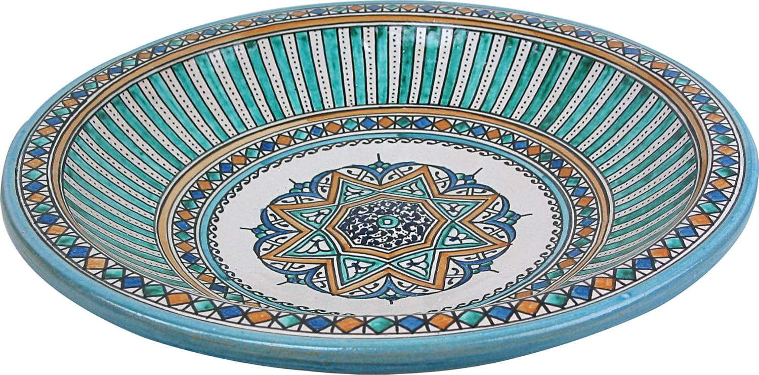 Plato Grande De Ceramica Marroqui Hecho En Fez Y Pintado A Mano Diametro 40cm Altura 10cm Diseno Azul Turquesa Amazon Es Hogar