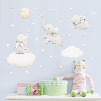 Dibujos Animados Estrellas Nube Pegatinas De Pared Elefante Animal Pegatina Bebe Ninos Habitacion Decoracion Estilo Nordico Vivero Vinilo Calcomanias De Pared Amazon Es Deportes Y Aire Libre