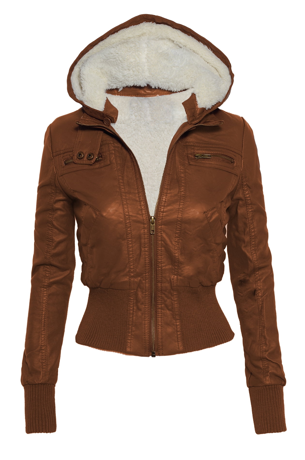 Ladies Faux Leather V Bomber Jacket With Detachable Faux Fur Hood Bl Ds Online