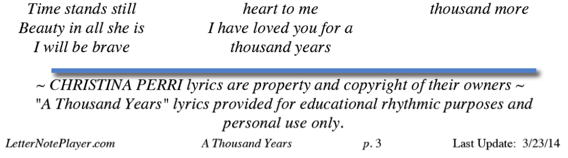 A Thousand Years Christina Perri Letter Notes For Beginners Music Notes For Newbies