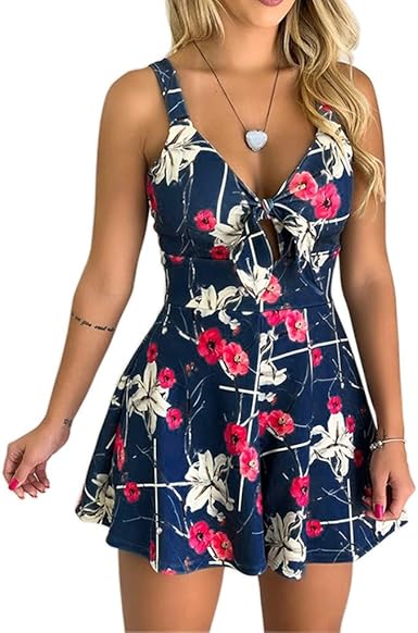 Monos De Vestir Mujer Cortos Cuello V Verano Mono Corto Mujeres Sin Tirantes Mono Verano Mujer Monos Corto Sin Tirantes De Floral De Fiesta Monos De Playa Azul25 Xl Eu 40 Bust 98cm 38 58 Amazon Es