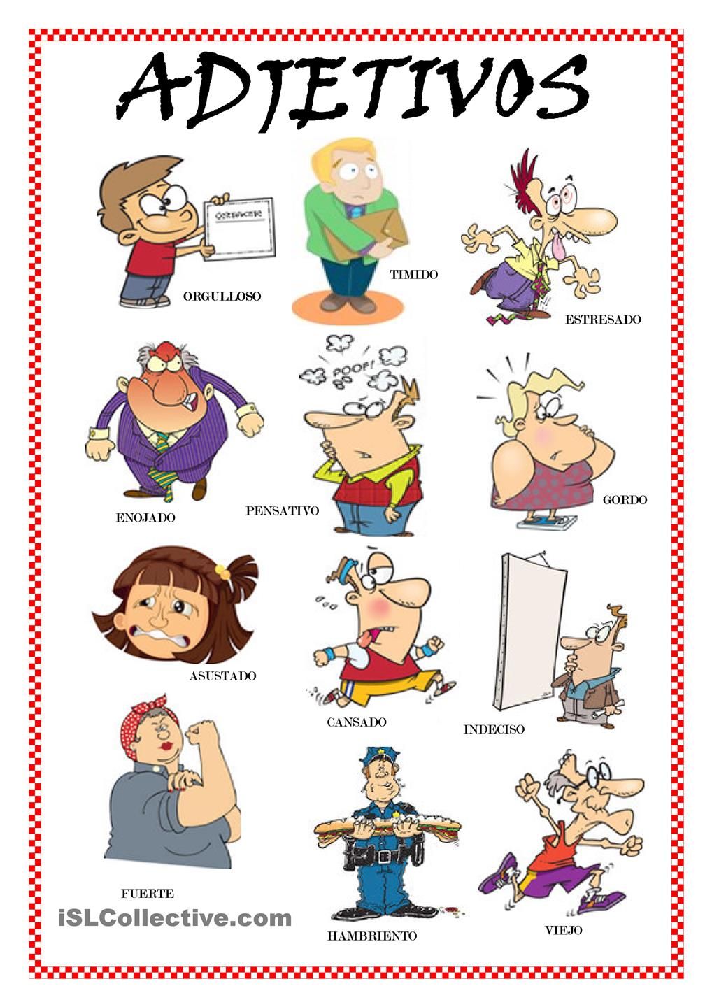 Juegos didácticos y educativos que ayuden de manera divertida a asentar y a aprender nuevos conocimientos Dibujos para colorear que ayuden a aprender el abecedario y los nombres de los colores Cuentos interactivos con mensajes y valores adaptados. Juegos con sustantivos Mª Carmen Pérez 03 Mª Carmen Pérez. 03oct18 Explora el tablero "Adjetivos" de Christie Dunkley, que 278 personas siguen en Ver más ideas sobre adjetivos, clase de español, enseñando español.